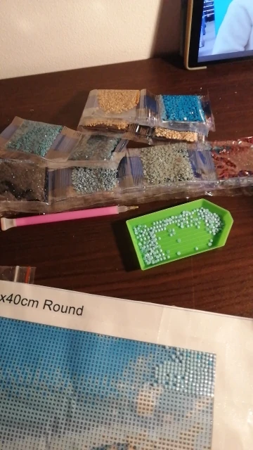 4. Choose a color to start with and add a small number of drills to the diamond painting tray. It's best to work with one color at a time to stay organized.
